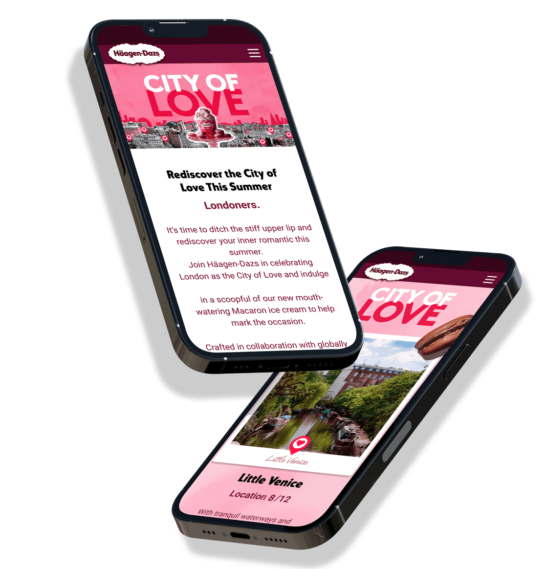 Häagen-Dazs needed to launch their new macaron-inspired ice creams, turning their global "Summer of Love" concept into a memorable, local reality. The core challenge was twofold: to transform London into the true City of Love and to execute a complex digital campaign despite a rigid global site framework and logistical complexities with a globally distributed development team.